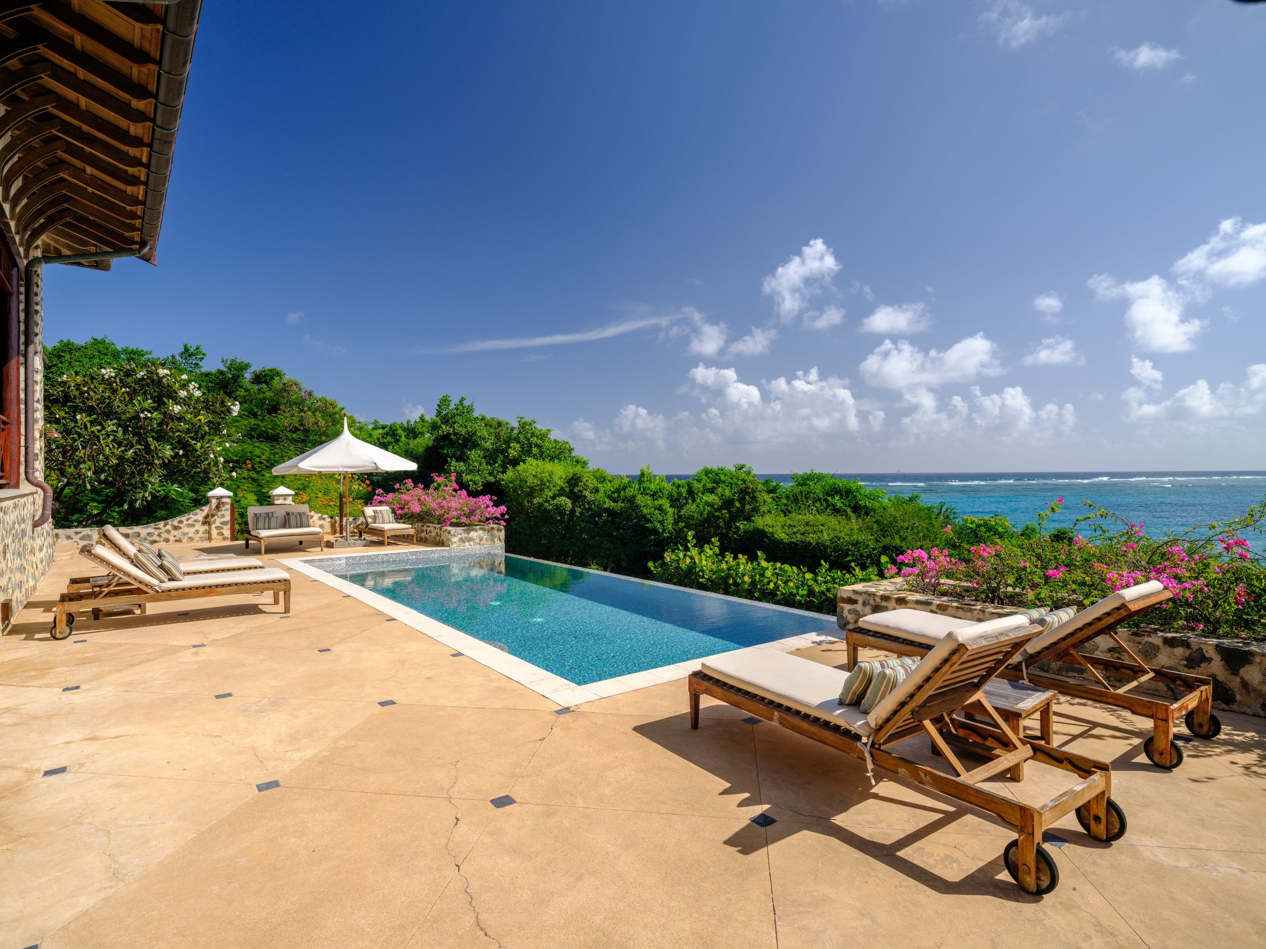 - Big Blue Ocean is a beautiful five-bedroom split-level residence, with 7,352 Sq. ft (683 Sq. m) of covered space. Located on 2.4 acres, it includes direct beach access with its own private path directly on to Point De Jour Beach. There is a large infinity pool and jacuzzi located off the main terrace, with a 2,745 Sq. ft (255 Sq. m) deck, offering views of the Caribbean Sea and the beautiful barrier reef.