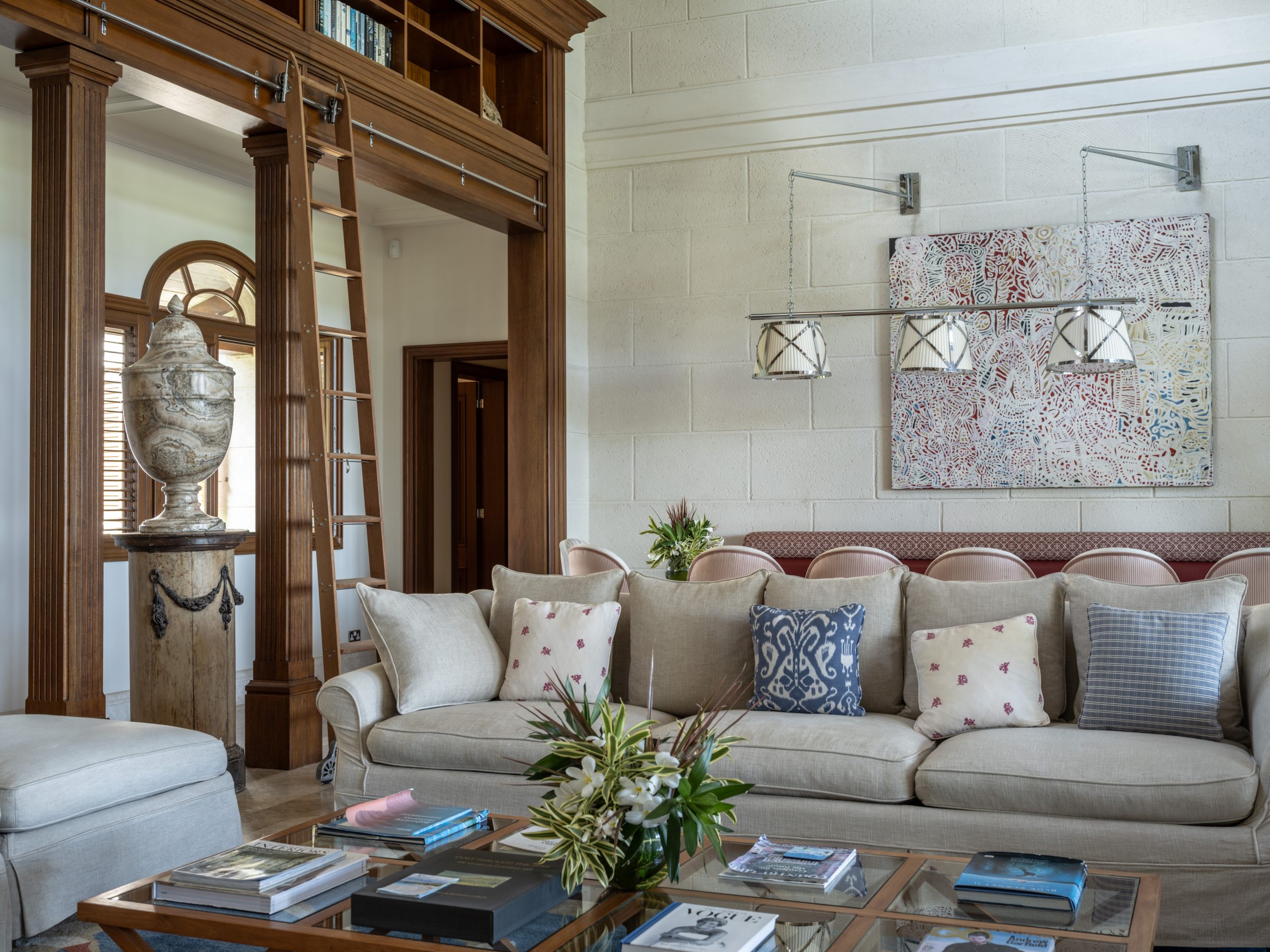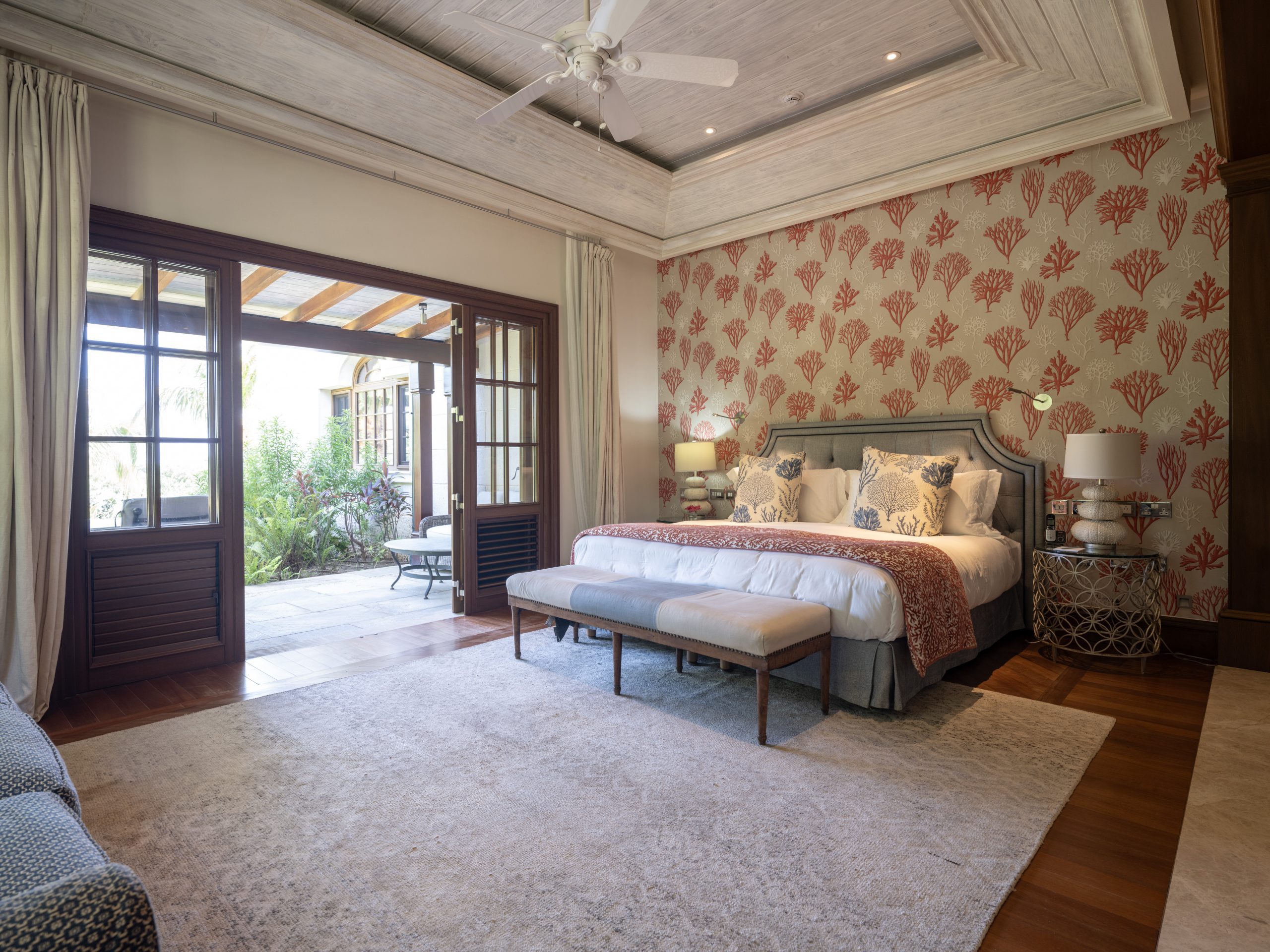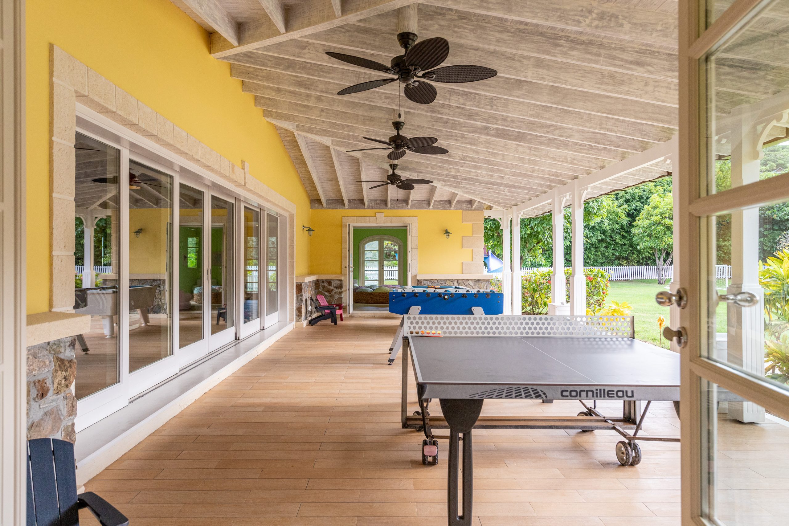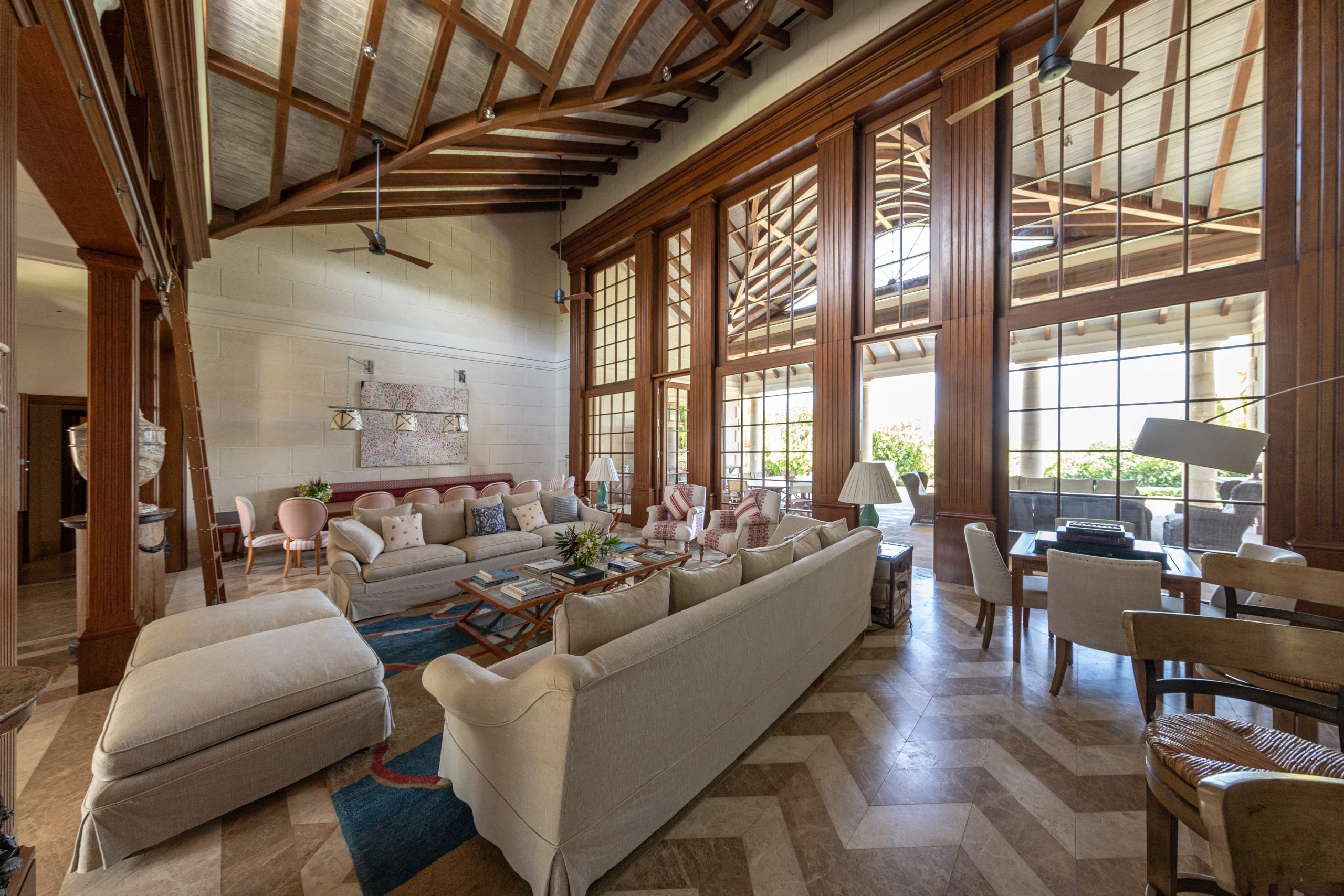 - Maison Tranquille is a beautiful three or four-bedroom residence, with 3,983 sq. ft of interior living space. Featuring a sophisticated, seaside design, spacious living area with wood ceilings and glass sliding doors, leading to the veranda. Marble and marmoreno surfaces are featured throughout the villa.