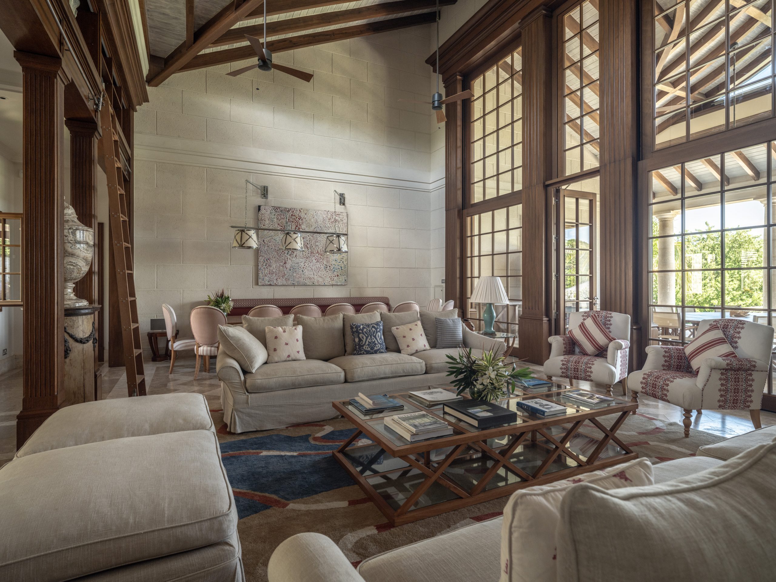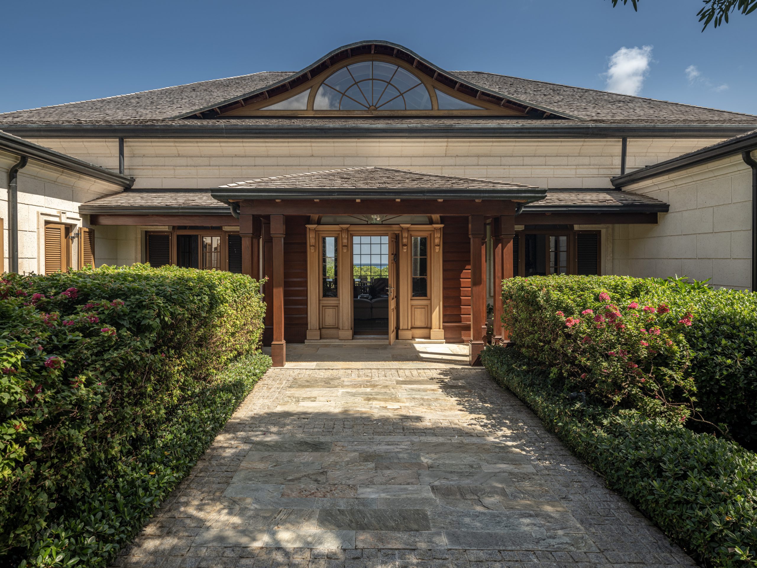 - The Beach House is a four or five-bedroom single level residence compromising 3,983 sq. ft of covered space including two guest cottages, an outdoor pool and deck, with its own private pathway to the soothing turquoise waters of the Caribbean.