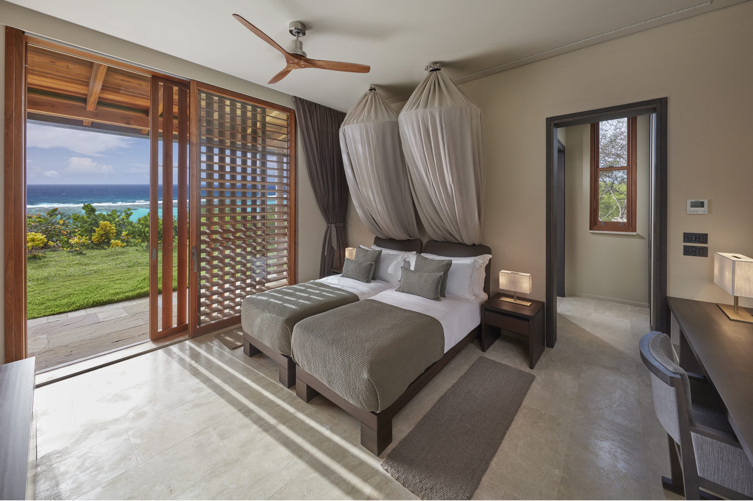 - Mandarin Oriental, Canouan is an all-suite, all-villa island gem with chic and Italian-design Patio Villas. Overlooking Godahl Beach and the Atlantic Ocean, these spacious suites offer uninterrupted ocean views, an elegant colonial style bedrooms, light-filled living room and balcony. The en-suite marble bathroom features a double vanity and a separate bath and shower.