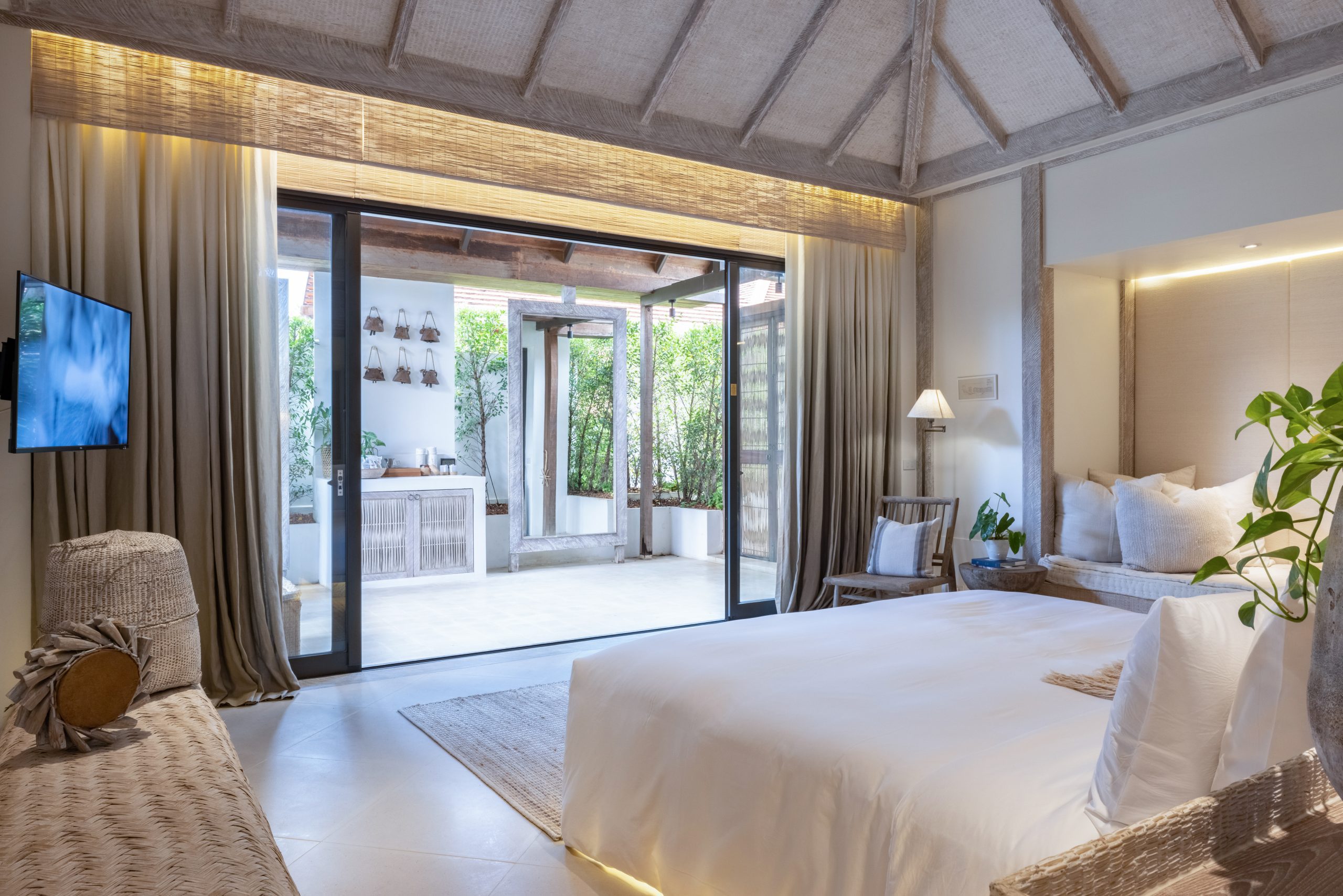 - Huen Bon Suites is accessed by a private staircase to the third floor boasting high-pitched ceilings that recall the style of Thai house architecture of the past.