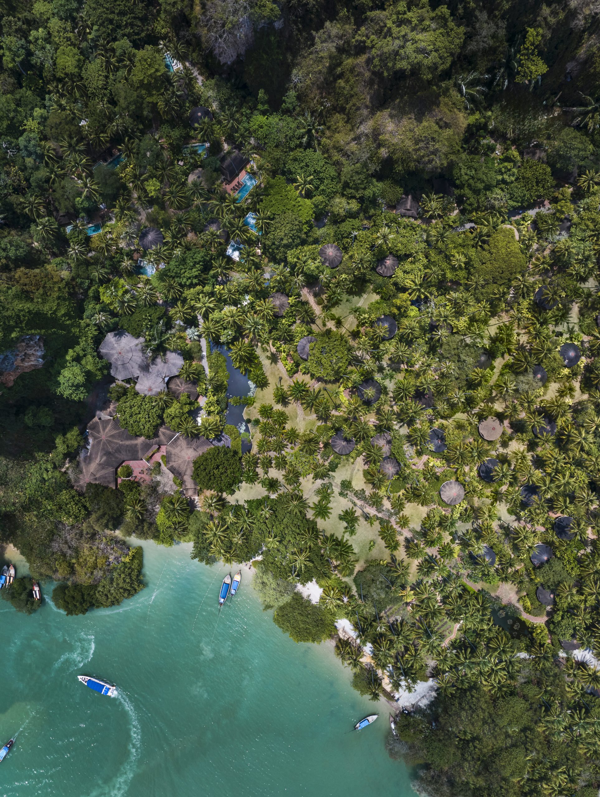 Rayavadee’s setting on the edge of Krabi’s National Marine Park at the heart of the stunning Phranang Peninsula perfectly blends lush foilage, limestone cliffs, white sand beaches, and the emerald waters of the Andaman Sea. The resort’s award winning architecture and tropical landscapes were inspired by the atmosphere of a southern Thai village.